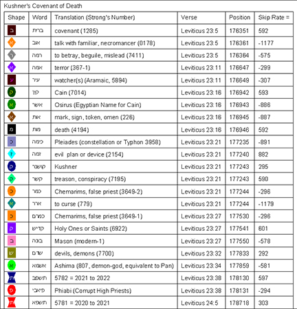 When you look at these words in the code and compare them with the deal in Isaiah 28, you notice that Mr. Kushner is making a deal with the same people that Isaiah condemns. If the Israelis and Mr. Kushner think they can make a deal with the demons and expect it to come out all right... they need to think again. We need to pray against that deal and against Chabad-Lubavitch, the religion behind this deal. The next Bible Code covers the Dark Connections between Chabad and "Ancient Evil."